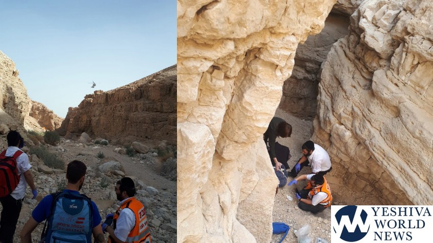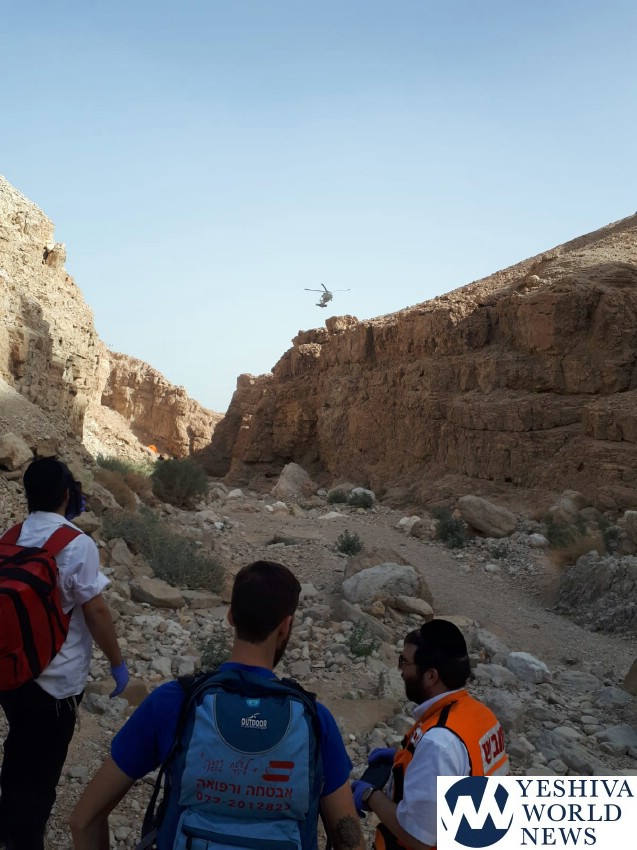 According to a United Hatzalah report on the incident, EMTs Aharon Pump and Yechezkel Cohen were on the scene and provided initial care for the woman. Members of the Ein Gedi Search & Rescue responded, and they worked with the team of the military chopper to extricate her from the area. Her condition was described as light-to-moderate.