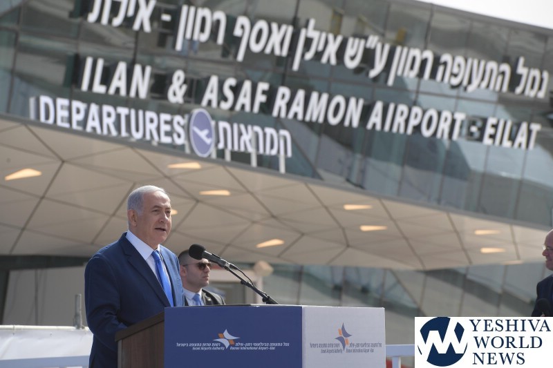 PM Netanyahu spoke with Ramon Airport Control Tower prior to the landing of the first flight at the airport.