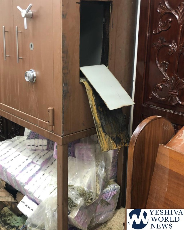 The vandalism was discovered when mispallalim arrived on Tuesday morning, realizing what had occurred during the night. Police forensic experts arrived on the scene to gather evidence while the work began to pick up the Sifrei Torah and sifrei kodesh and begin restoring the shul to its state prior to the attack.