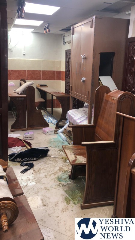 The SIach Yisrael Shul in the Kiryat Yovel section of Yerushalayim was found desecrated and vandalized on Tuesday morning, in images reminiscent of Kristallnacht R”L. At least four Sifrei Torah were found strewn about on the floor, with the Aron Kodesh vandalized, and signifigant damage done to the Shul.