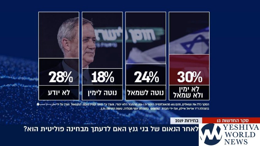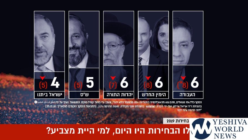 Following are latest election polls reflecting how the various parties would fare if elections for the 21st Knesset would be held today. The results of the poll were aired on the evening news Wednesday night, January 30, 2019.