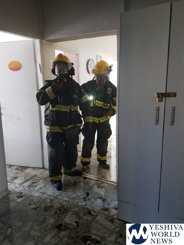 At approximately 11:30 Tuesday morning, a report was received in the operations room of the Beit Shemesh fire station about a fire inside a building serving as a shelter for the residents of Mevasseret Tzion.