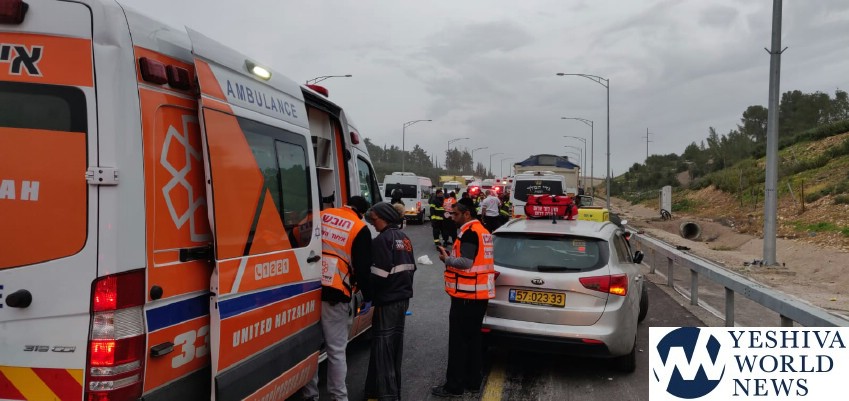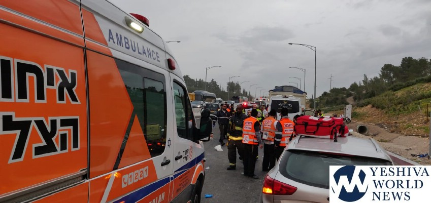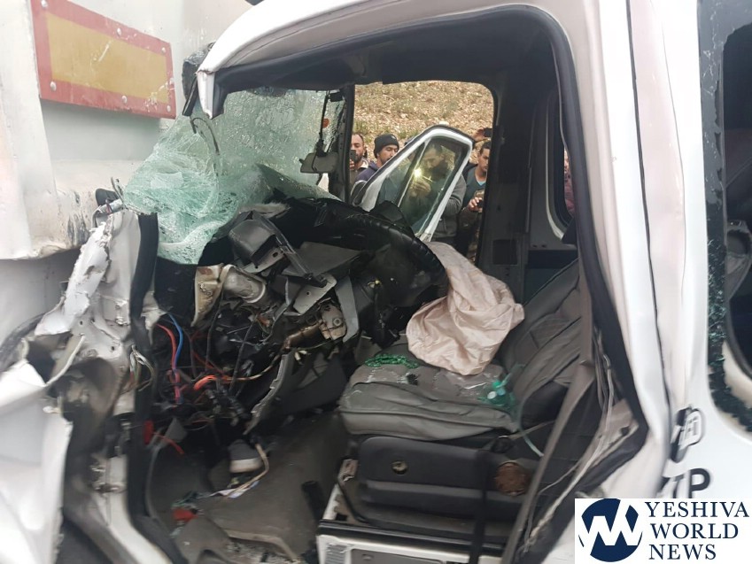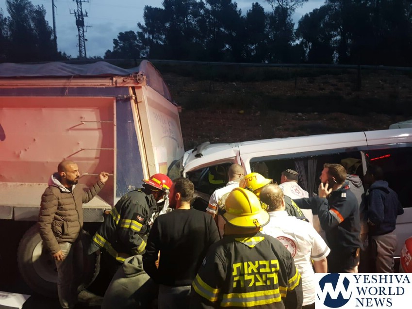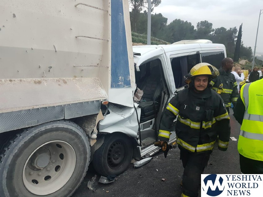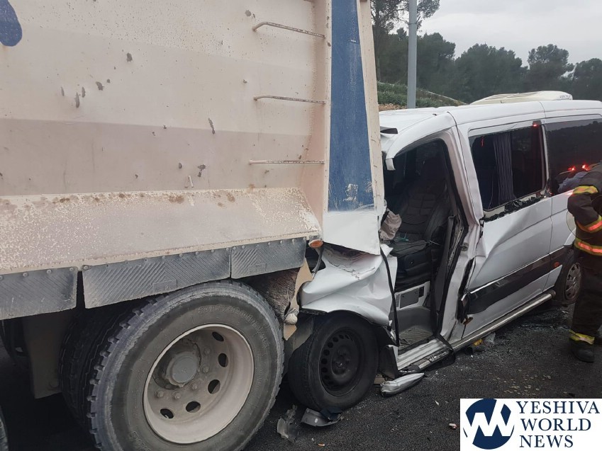 Magen David Adom received the call at 5:50AM Wednesday morning, for a serious accident between a minibus and a truck on Route 38 near Eshtaol, in the direction of Mesilas Tzion. Route 38 was shut down from north to south between the area connecting to the Jerusalem-Tel Aviv Highway. Traffic was rerouted to Route 44.