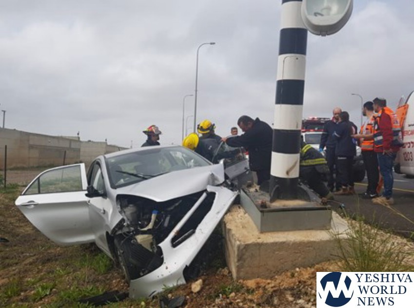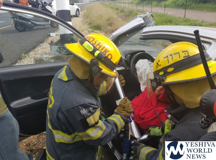 United Hatzalah EMT Ariel Zohar reported that the victim suffered injury to his lower extremities and was extricated from the vehicle by fire rescue. He was transported to the hospital in critical condition, but was R”L Niftar after arriving to the hospital.
