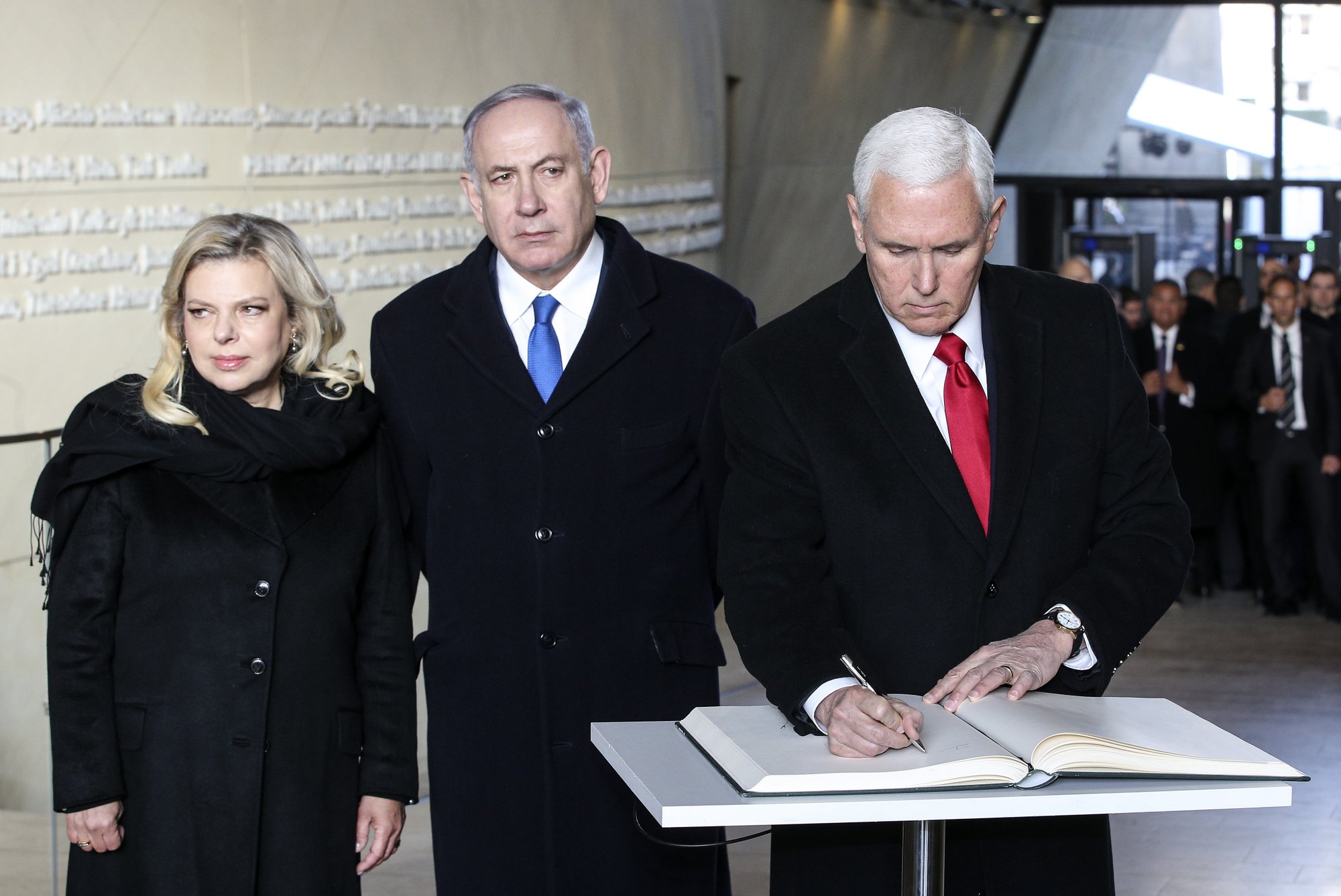Prime Minister Netanyahu and US @VP Pence signed the guestbook at the adjacent Museum of the History of Polish Jews