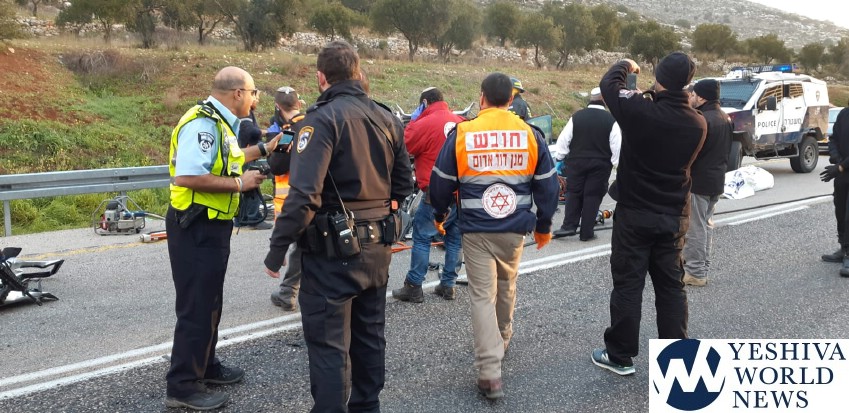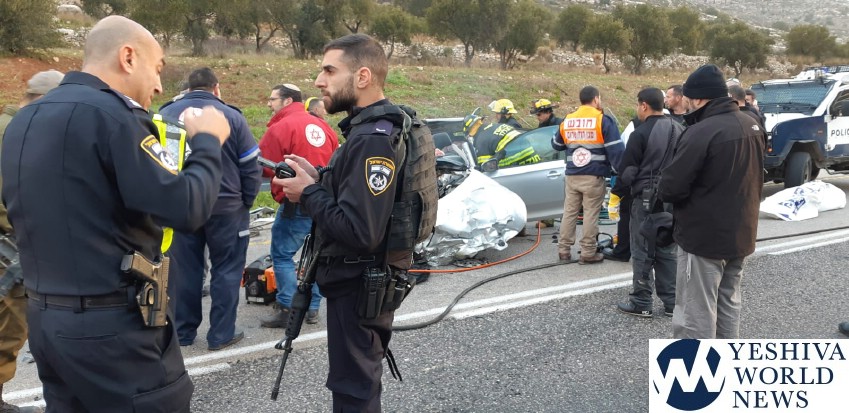 There was a fatal vehicular accident on Route 60 in Shomron on Tuesday morning, in the Binyamin Regional Council near Yishuv Eli. Two Israeli-driven vehicles; a truck and sedan, collided head-on, resulting in two fatalities. The accident took place at about 6:00AM, in the northbound direction, from Gush Shilo towards Tapuach Junction.