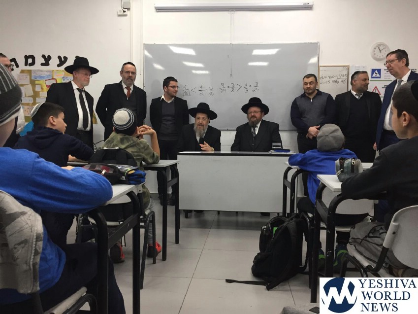An impressive event took place in Rehovot on Monday, the special visit of the renowned halachic authority HaGaon Rav Bentzion HaKohen Kook, who heads the Beis Hora’ah Klalli as well as being a prominent talmid of Maran HaGaon HaRav Yosef Sholom Elyashiv ZT”L, together with the Av Beis Din London, HaGaon HaRav Yonason Abraham Shlita, who is president of the Shuvu Network in the United States. He arrived on a special visit to give a chizuk along with leaders of Shuvu, visiting the Shuvu School in Rehovot, which is involved in kiruv.