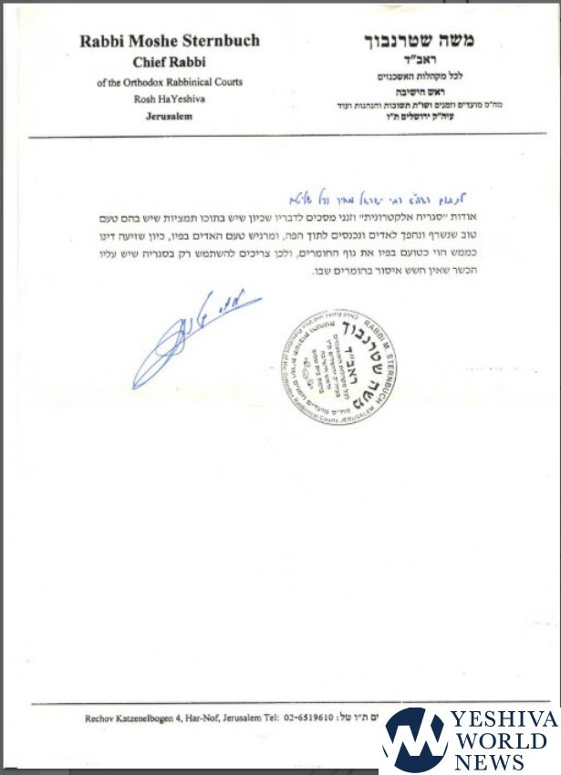 HaGaon HaRav Moshe Sternbuch: Vaping (E-Cigs) Requires A Hechsher
