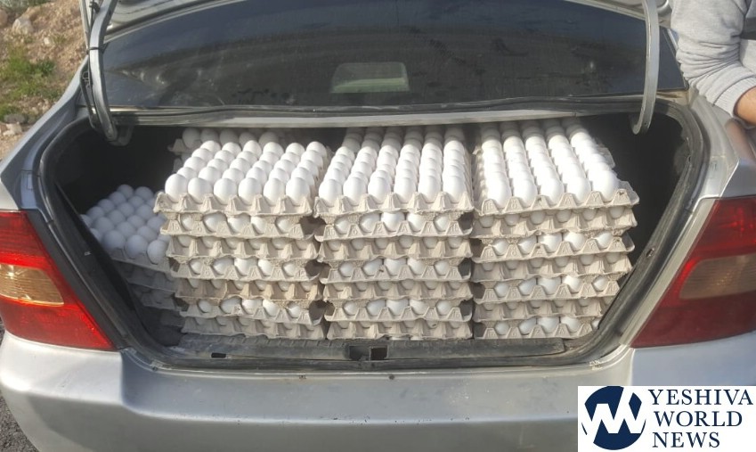 On Monday evening, border police working with inspectors of the Ministry of Agriculture stopped a vehicle traveling on Route 65 towards the Israeli Arab Municipality of Um, el-Fahm. They searched the vehicle, only to find the eggs, which were being smuggled into Israel proper from the PA (Palestinian Authority). The 20-year-old Um el-Fahm resident driving the car was taken into custody.