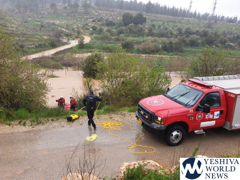 Jerusalem district fire rescue, police and EMS were all activated on Thursday morning, for drivers whose vehicles became trapped in the current of the water in Emek Arazim, the result of heavy rainfall in Yerushalayim since Wednesday night.