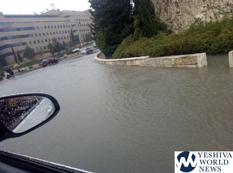The rainfall is flooding the Jerusalem’s sewer system and, in some areas,, like the Jerusalem light rail tracks in the center of town, there is no where for the water to go.