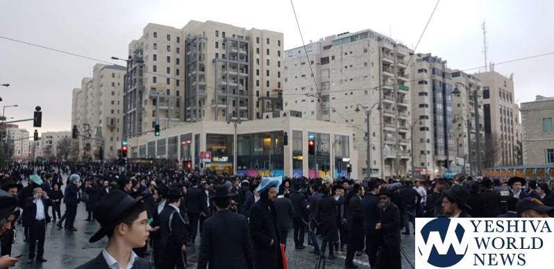 Yeshiva Bochrim learning in Peleg affiliated Yeshivos and supporters took to the streets on Thursday afternoon once again, protesting on Jerusalem’s Sarei Yisrael near Yafo Streets at 4:00PM against the arrest and jailing of a talmid yeshiva.