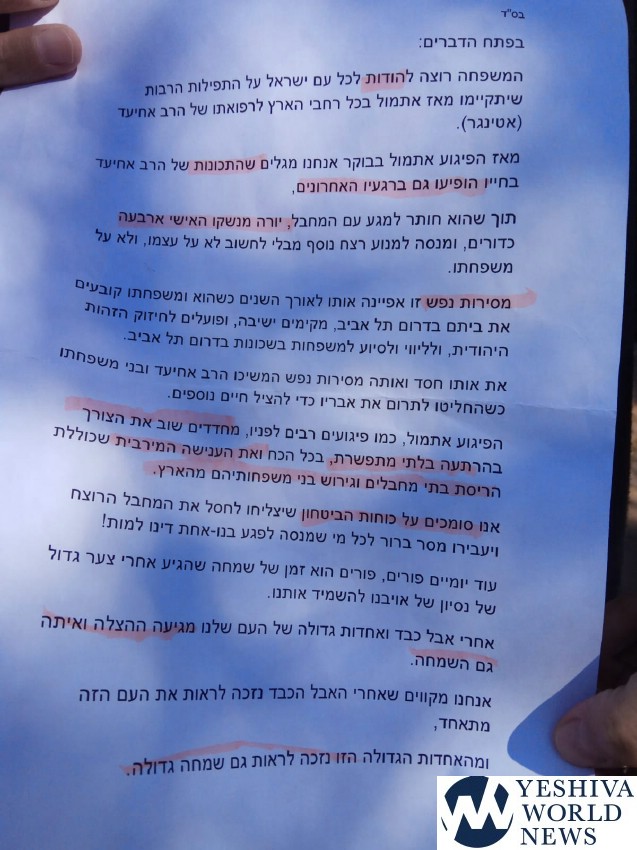 Nadav explains Achiad and his family were no strangers to mesirus nefesh, as was the case when they relocated to southern Tel Aviv’s N’vei Sha’anan neighborhood to give a chizuk to the yeshiva and efforts to resettle the area as seen in the video below.