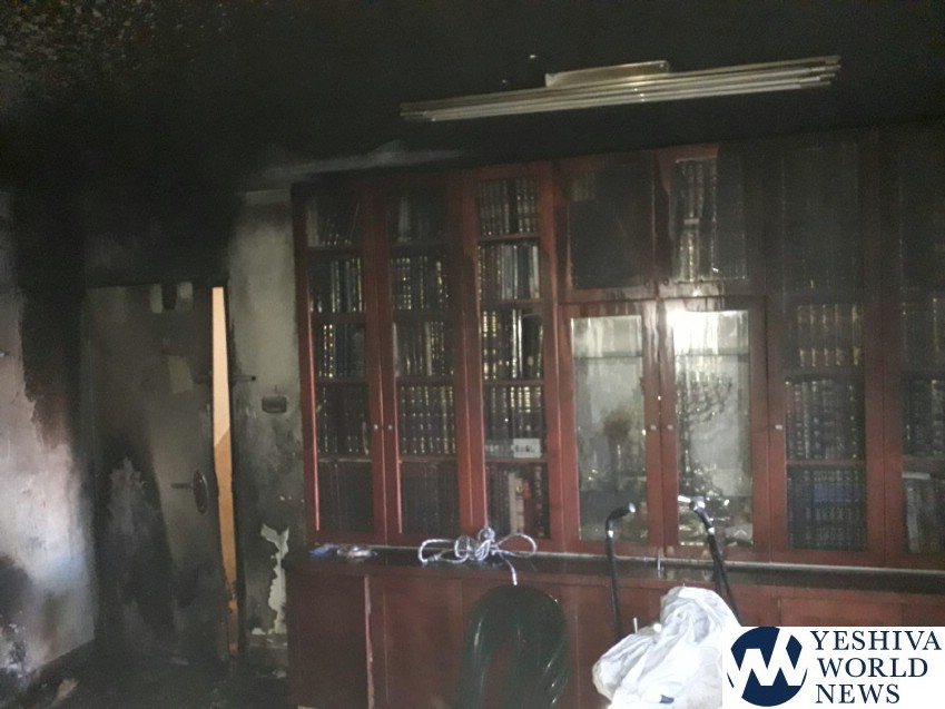 If one looks at the photos, one sees that Baruch Hashem, the seforim shrank was not damaged in the fire as was the remainder of the room.
