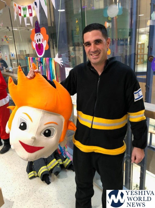 Firemen from the Beit Shemesh district are continuing their annual tradition of bringing happiness to hospitalized children before Purim. The annual tradition was started by firefighter Itzik Biton a number of years ago and has continued since.