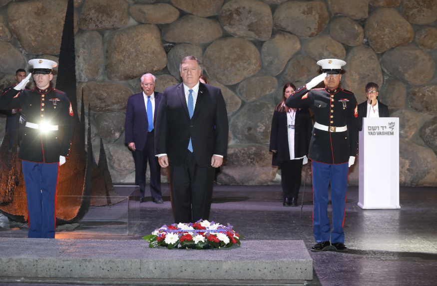 Today, @SecPompeo participated in a wreath-laying ceremony at @yadvashem in Jerusalem. @usembassyjlm pic.twitter.com/JFZYa1vueb