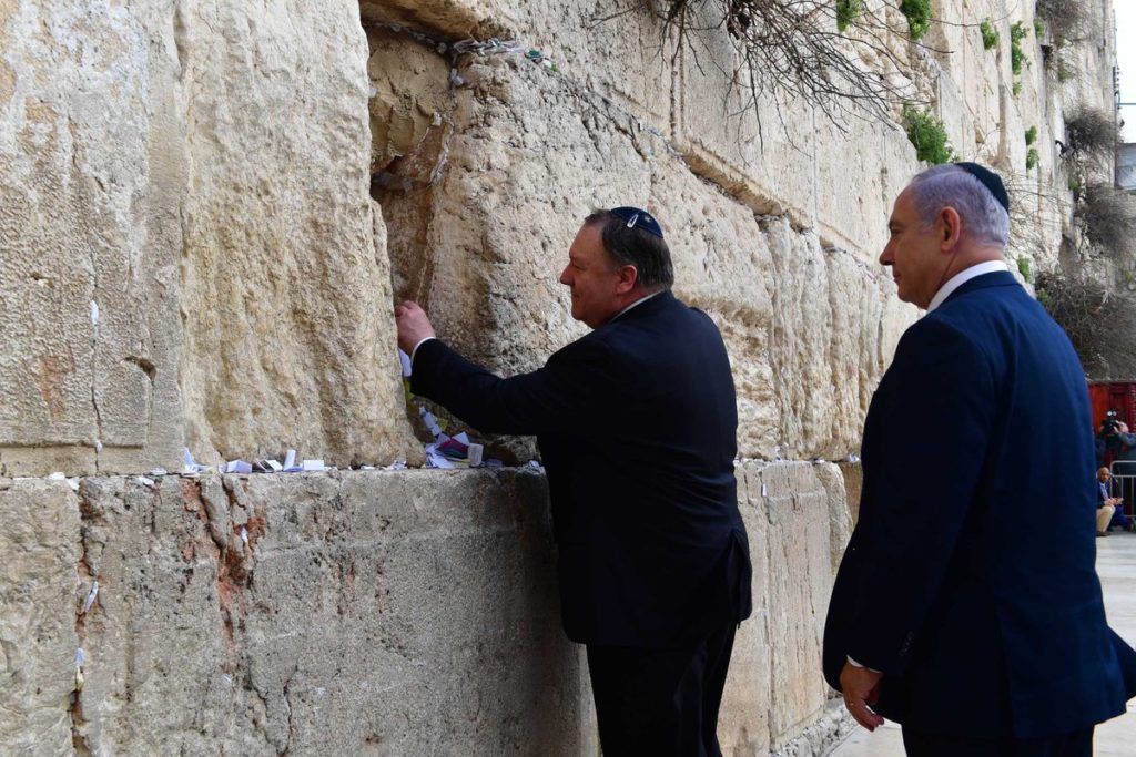 עם מזכיר המדינה האמריקני, ידידי מייק פומפאו, בכותל המערבי pic.twitter.com/QCk2676doF