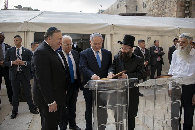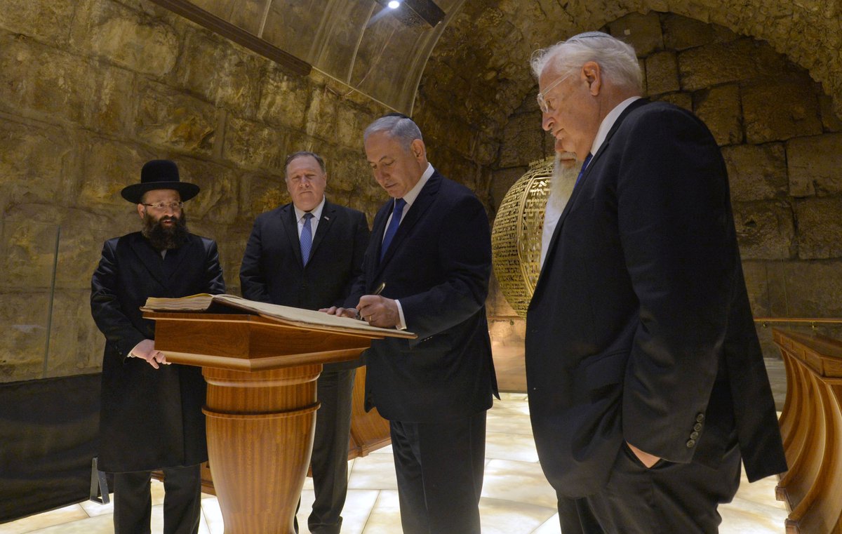 Pompeo was joined by Prime Minister Netanyahu and US Ambassador to Israel David Friedman. Pompeo became the highest-ranking U.S. official to visit the Kosel with any Israeli leader.