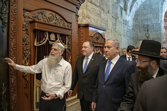 On Thursday, US Secretary of State Mike Pompeo visited Yad Vashem Holocaust museum, the Kosel, toured the Western Wall tunnels & Wilson’s Arch excavations and visited the Shaarei Teshuva synagogue in the tunnels.