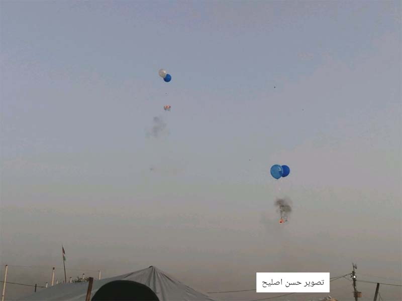 Earlier in the day a resident of the Regional Council of Merchavim reported seeing balloon bombs in the air. The sighting was followed a few minutes later by a report of a fire bursting in the area. Security personnel are checking to see if the fire began as a result of the balloons.