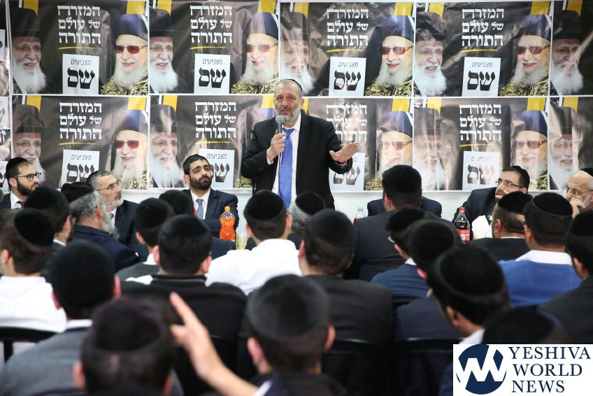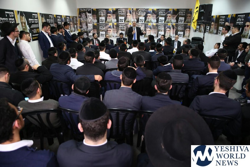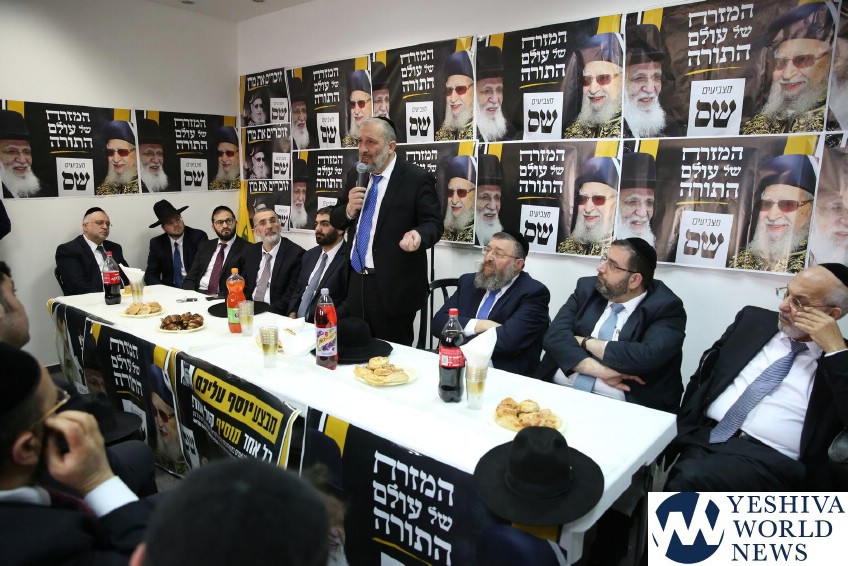 The Shas party held an election rally in Chamei Yoav, with the participation of HaGaon HaRav David Abarjil Shlita and Shas Chairman Aryeh Deri. The event was attended by approximately 400 activists.