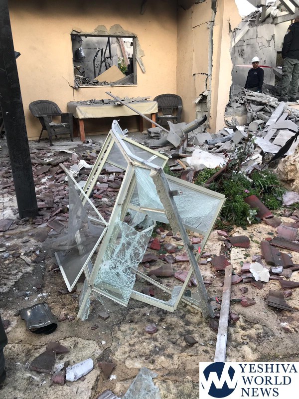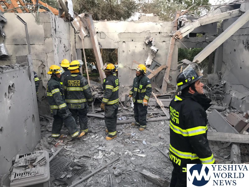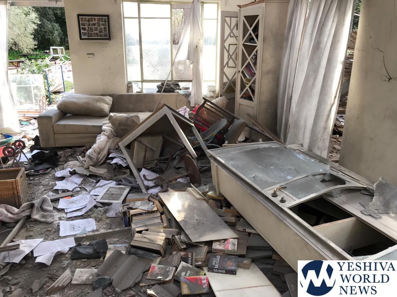 The rocket launch from Gaza was detected at 5:22 AM Monday morning, March 25, 2019, and the rocket fired from southern Gaza slammed into a home where seven people were sleeping. The home sustained extremely heavy damage. B’chasdei Hashem, there was no loss of life. The family’s four dogs were killed in the attack.