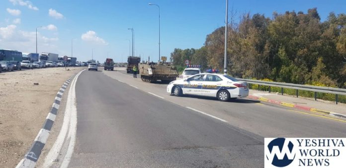 Israel Police Traffic Enforcement Unit officials reported on Tuesday morning that at Emunim Junction on Route 4, a tow truck carrying an armored personnel carrier (APC) released the APC on the road accidentally.