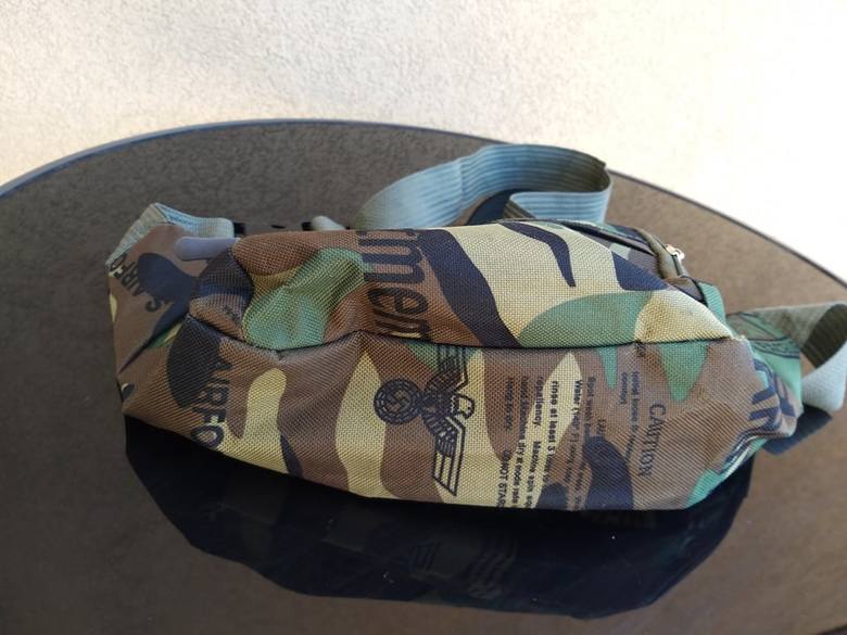 “It’s sewn out of camouflage fabric and has various bits of text,” the client said, adding that she only recently realized there was a swastika.