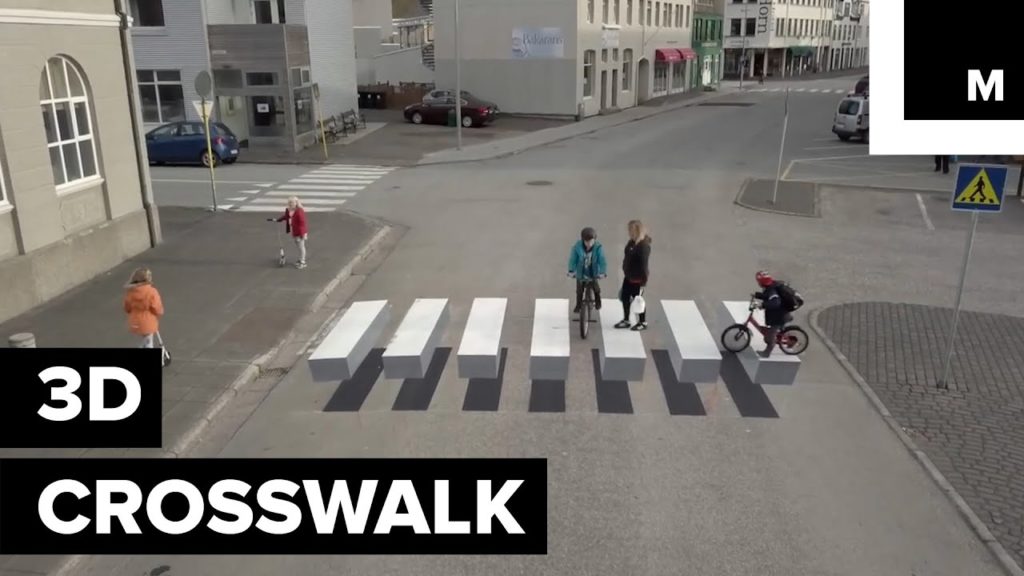 The new crosswalk, as seen in the accompanying video, appears to be floating and raised off the street, which is hoped to be sufficient to get drivers to slow down, thereby also eliminating the need for speed bumps.