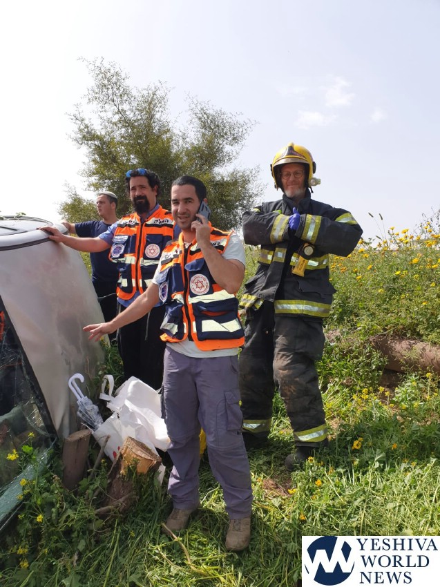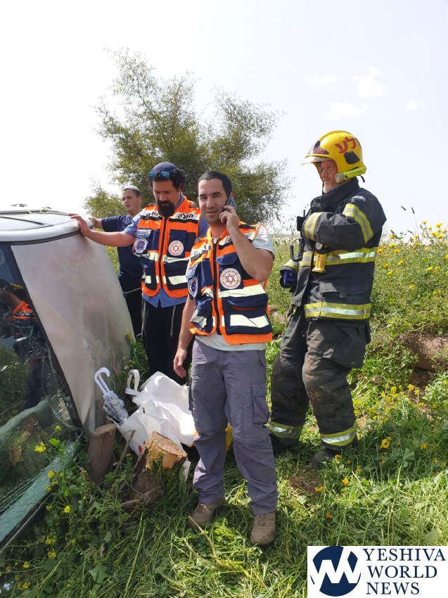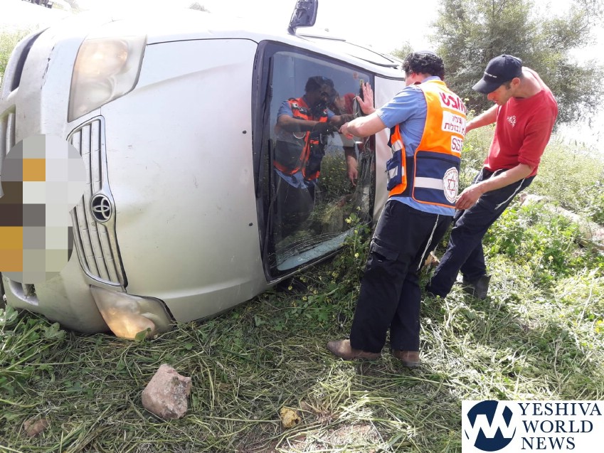 MDA Hatzoloh Rescuers without Borders responders on Monday, April 8, 2019, arrived at the scene of an accident in which a vehicle flipped over between the Bezeq Checkpoint and Mecholah Junction in the Jordan Valley.