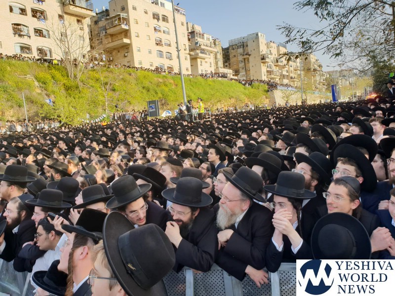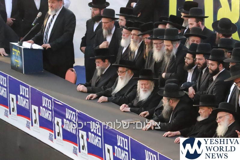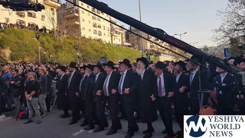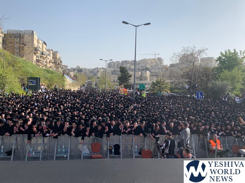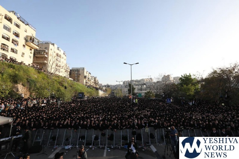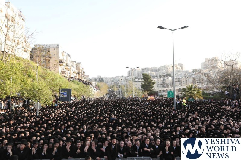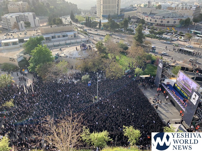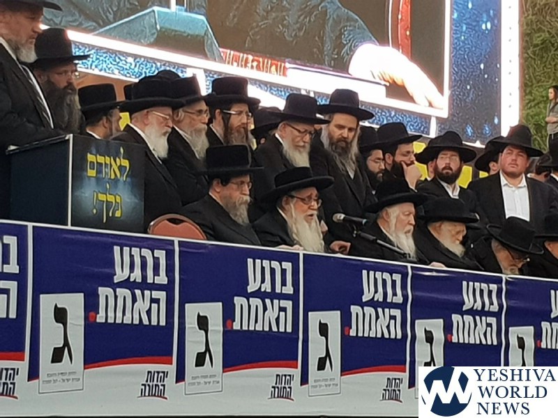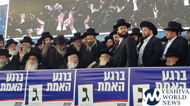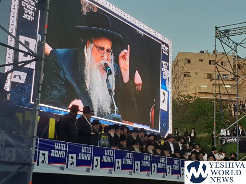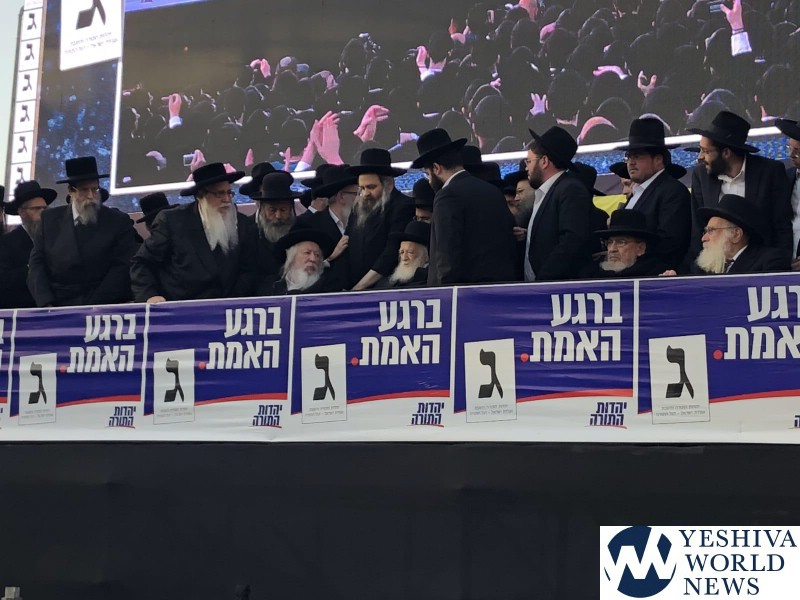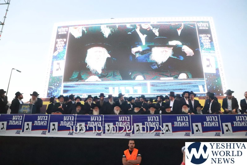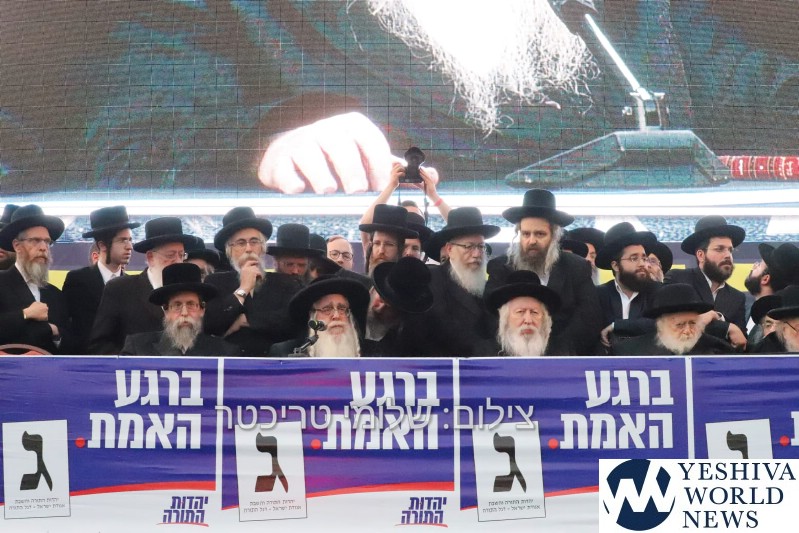 Tens of thousands of people gathered in Yerushalayim, Monday afternoon, to attend a historic election rally headed by Gedolei Hador Shlita, on Golda Meir Blvd. at the corner of Shefa Chaim Street.