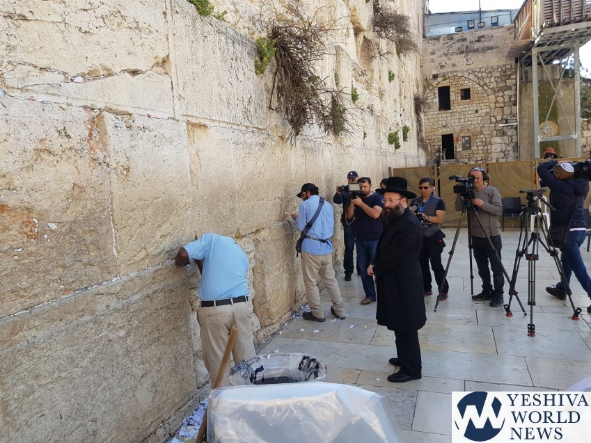 Knesset elections are behind us and it is time to focus on Pesach. At the Kosel, the team was out on Wednesday morning to remove the kvitlach ahead of yomtov as well as to inspect the integrity of the stones, to prevent any from falling.