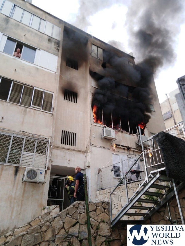 A fire broke ripped through a four-story residential structure on Eben Givrol Street in Haifa, in the Carmel district, Monday morning. Firefighters responded at about 8:30 AM to find flames emanating from second story windows.