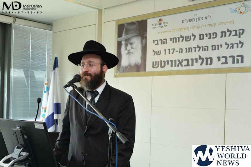 Rabbi Shaul Reitzes, head of Kollel Tiferes Levi Yitzchok of Tel Aviv and an educator in Yeshivat Chazon Eliyahu who was emcee, turned to the municipal officials participating in the event and chuckled “it’s time to examine the possibility of expanding the event hall of the mayor’s office, since the number of shluchim in Tel Aviv has grown from year to year and it’s almost impossible for all of them to enter…”