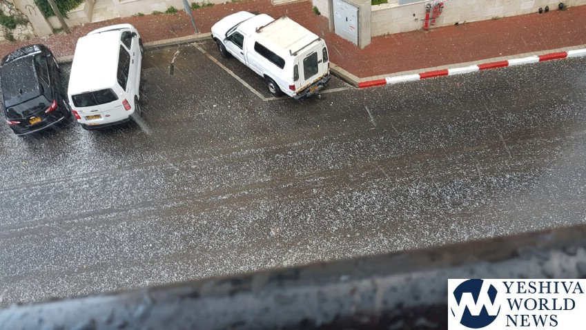 The bizarre weather includes hail in Bnei Brak as seen in the accompanying photos and video.