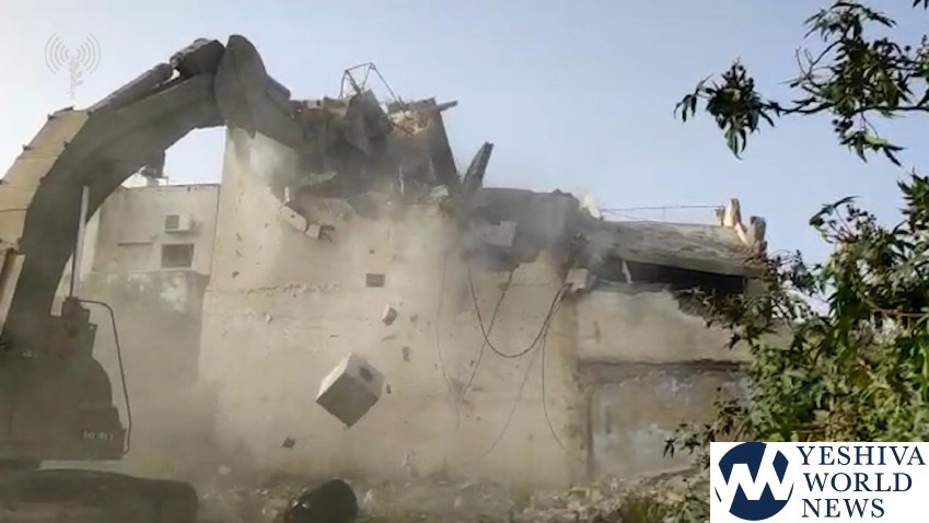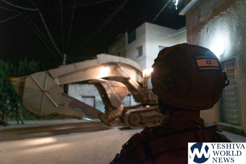 IDF forces working with border police and the Civil Administration destroyed the apartment of 19-year-old terrorist Omar Abu Layla of Kfar a-Zivya in the Ephraim District. The heinous terrorist was responsible for the Ariel Junction/Gitai Avissar Junction attack that claimed the lives of Rabbi Achiad Ettinger HY”D of Yishuv Eli and IDF soldier First-Sgt. Gal Keidan HY”D of Be’er Sheva.