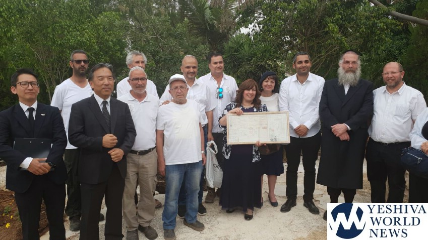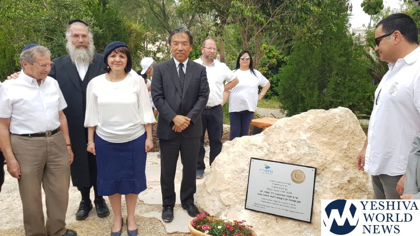 The Mayor of Beit Shemesh, Dr. Aliza Bloch, and the Deputy Ambassador of Japan in Israel, Mr. Yo Usumi, participated Thursday morning, Holocaust Remembrance Day, in the planting of a tree and the unveiling of a monument in memory of Chiune Sugihara, a Righteous Among the Nations.