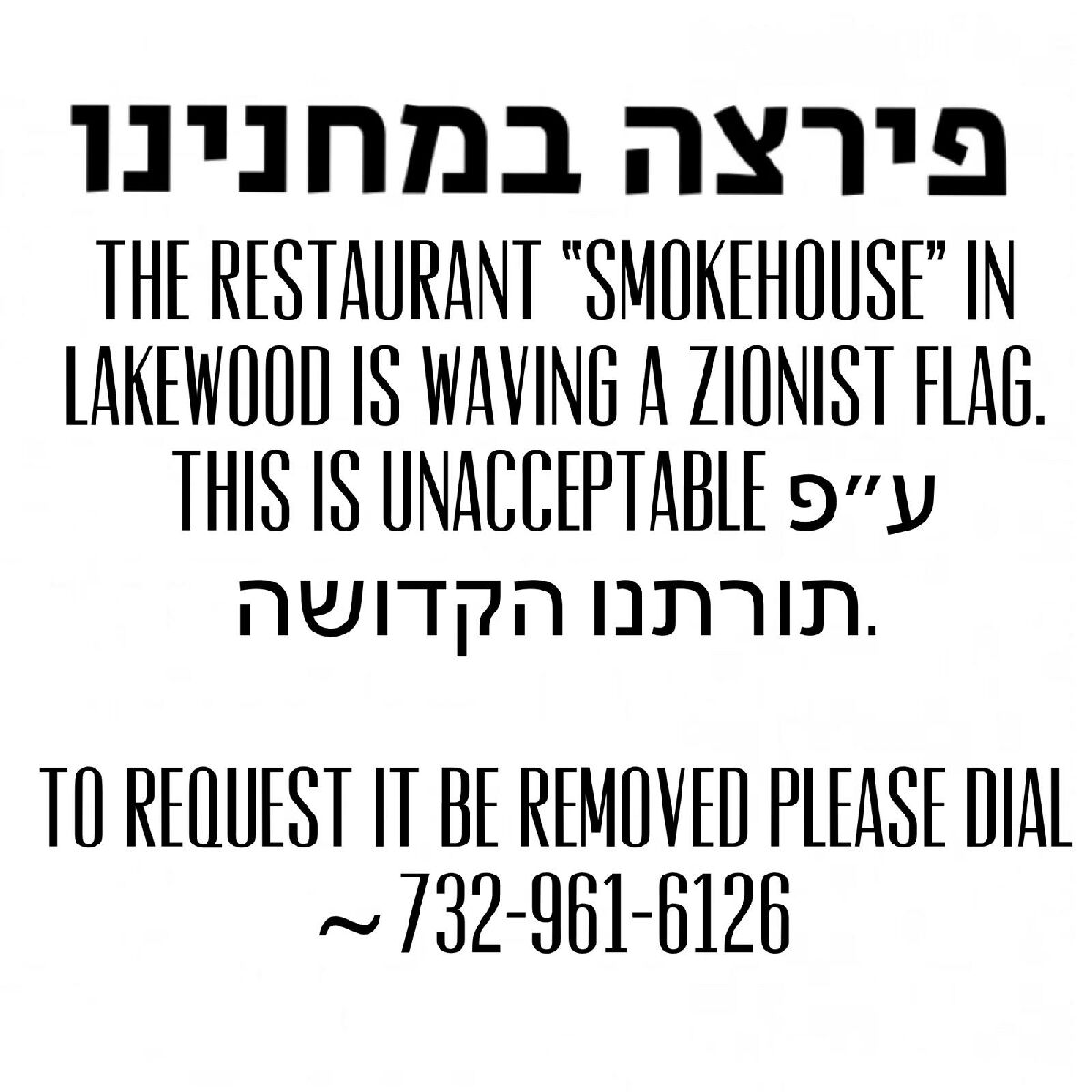 So while this restaurant owner may have been well-intentioned, and likely knows little-to-nothing about how Zionism and its state are anti-Torah to their core, the hashgacha is 1000% correct here in demanding the removal of the offensive symbol of the Zionist regime.