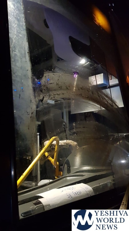 A bus traveling between Efrat and ‘T’ Junction was targeted with two firebombs in a terrorist attack on Motzei Shabbos. There was damage to the vehicle’s windshield. Four persons were treated for hysteria, as their screams can be heard in the accompanying video.