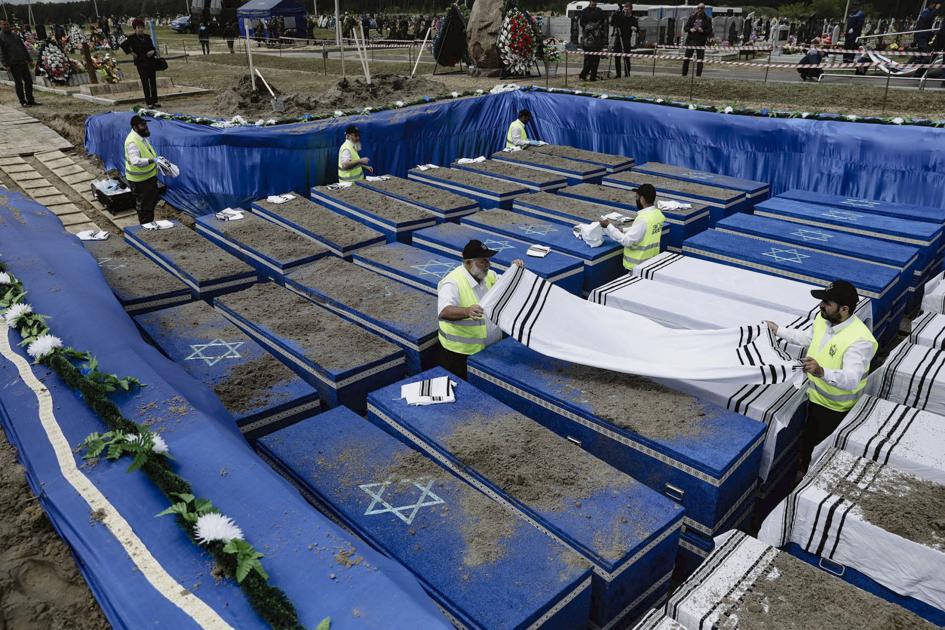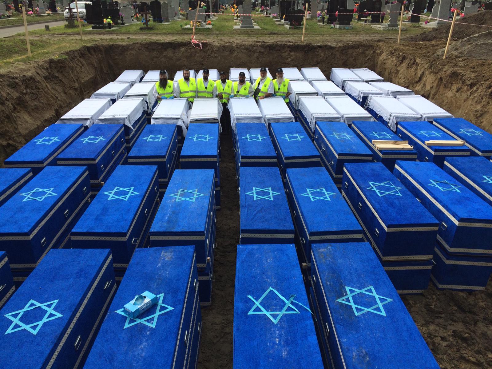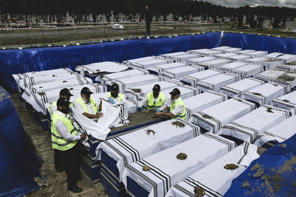 The remains were buried in 120 coffins emblazoned with the Star of David in a ceremony at a cemetery outside the town attended by city officials, Jewish community leaders and diplomats.