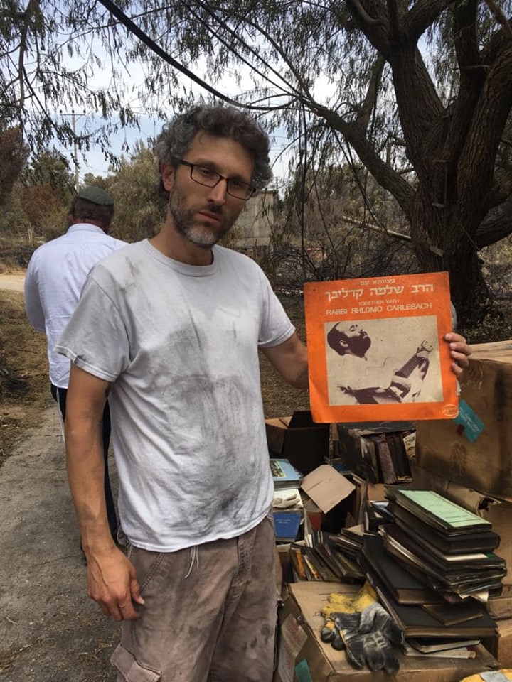 Shlomo Carlebach’s daughter Neshama shared the following photos and video to Facebook, captioned: “Somehow, even though our whole house on the Moshav burned, our father’s books survived….
