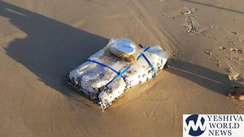 A package containing 20 kilograms (44 LBS.) of cocaine came ashore on the Ashdod beach on Sunday, May 26.