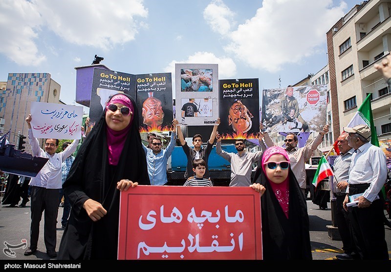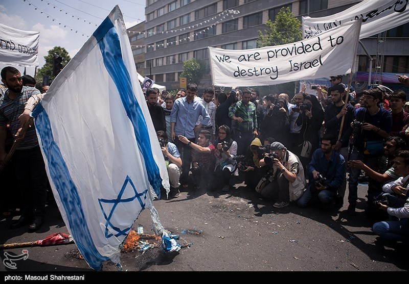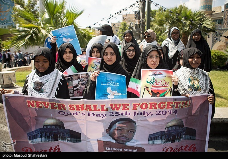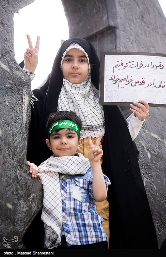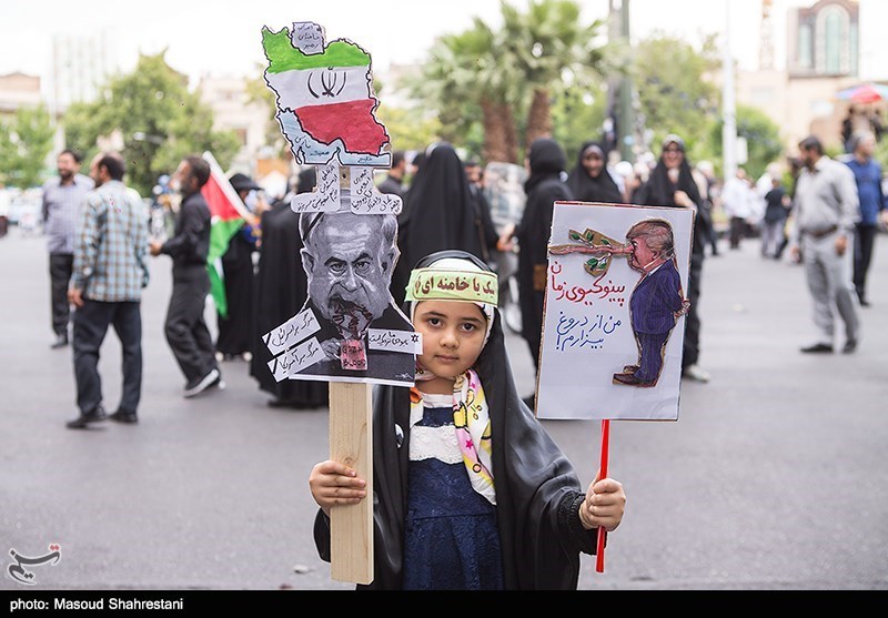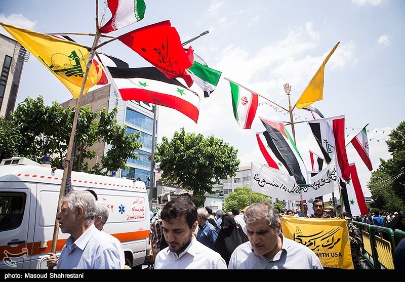 In the Syrian capital Damascus, a few hundred Syrians and Palestinians marked Quds Day by marching from the Hamidiyeh bazar in the old city to the landmark Umayyad Mosque, some of them shouting anti-Israel slogans and waving Syrian and Palestinian flags.