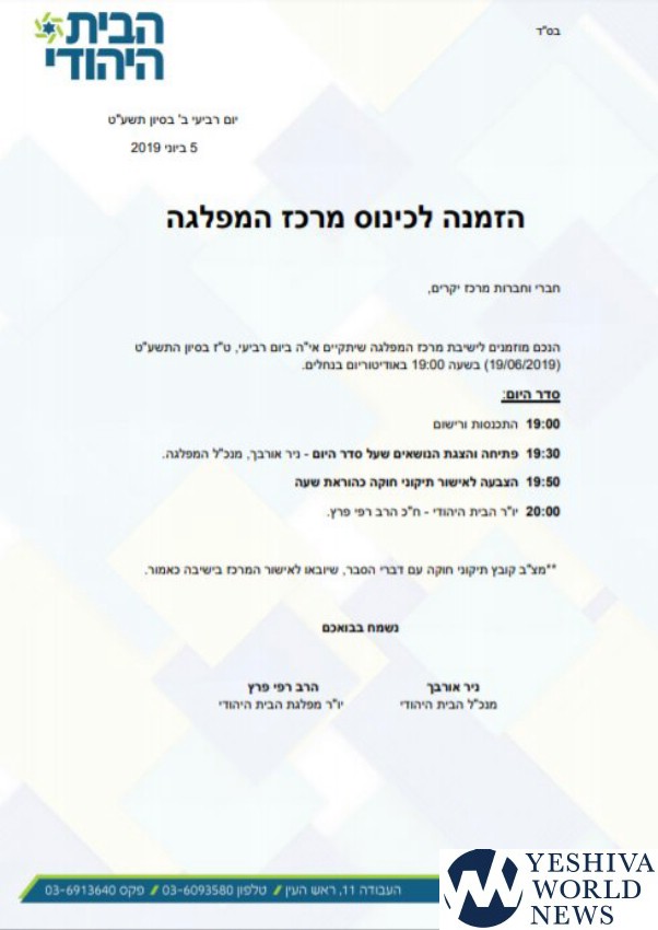 As a result of the ongoing disagreements between the two party leaders, it was decided on Wednesday night the Bayit Yehudi party’s central committee will convene in two weeks to once again decide the lineup for the upcoming Knesset elections.