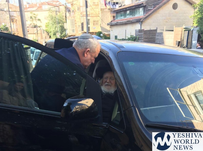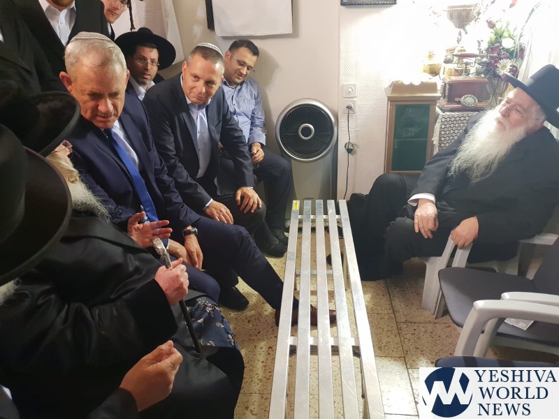 Leader of the Blue and White party Benny Gantz met with the Kretchnif Rebbe on Wednesday at the Shiva of Deputy Minister Meir Porush, who is sitting shiva for his brother Menachem Levi Porush Z”L.