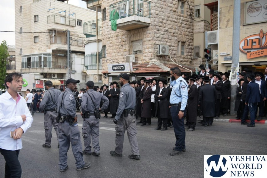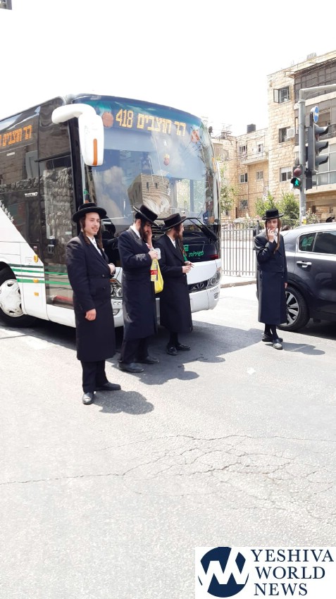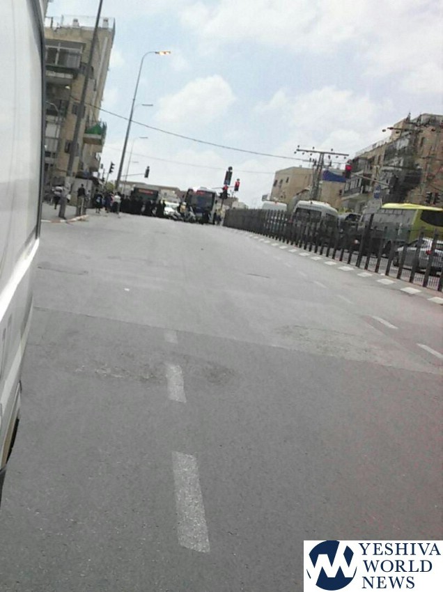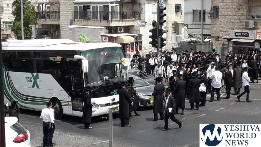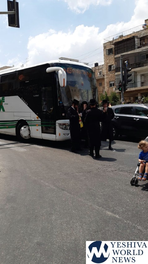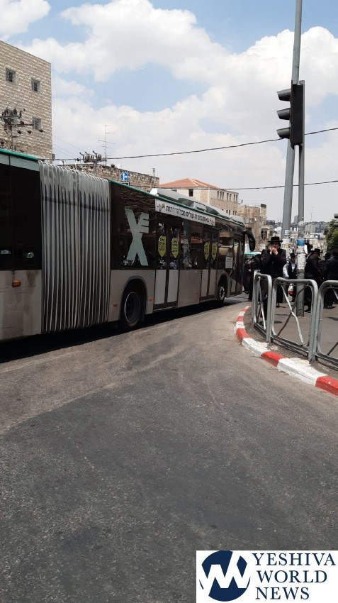 Later in the day, chareidim gathered at Bar Ilan Street in the capital, blocking buses and private vehicles, as seen in accompanying photos and video. One person was taken into custody.