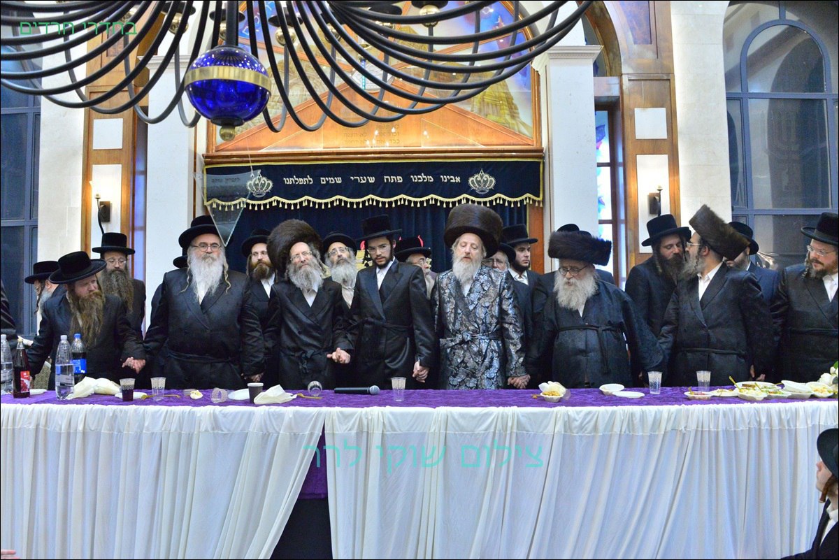 The chosson is Chaim Meir Lemberger, son of Rav Yisrael, son of the Maakva (מאקווא) Rov, and son-in-law of the Admor of Medzikov-Vishnitz. Admorim and rabbonim were among the guests at the simcha.