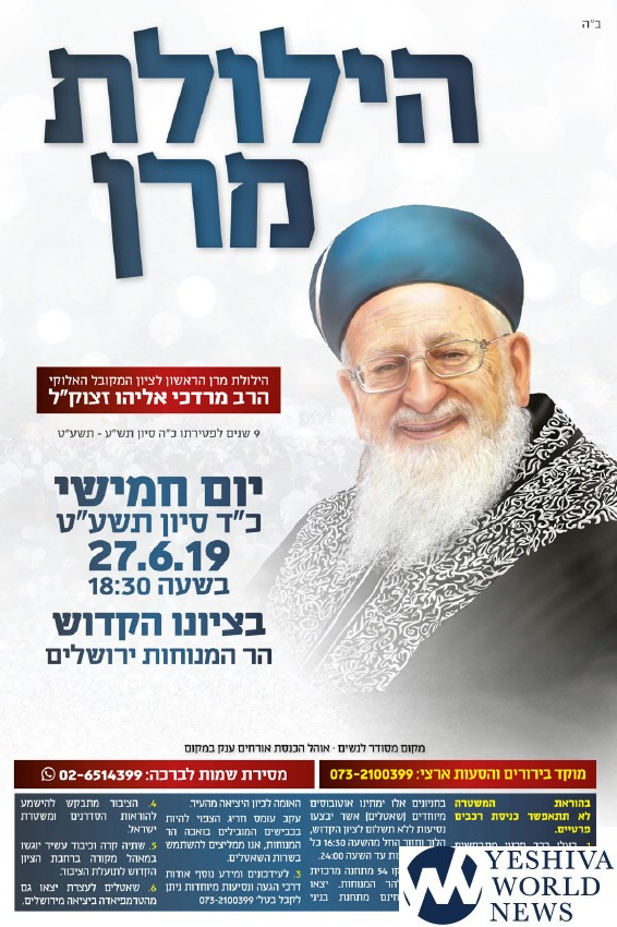 Thursday, 24 Sivan, marks the ninth yahrzeit for HaGaon HaRav Shmuel Eliyahu Shlita. The official visit to the kever will begin at 6:30PM, at Har Menuchos.