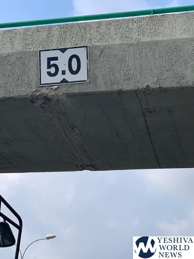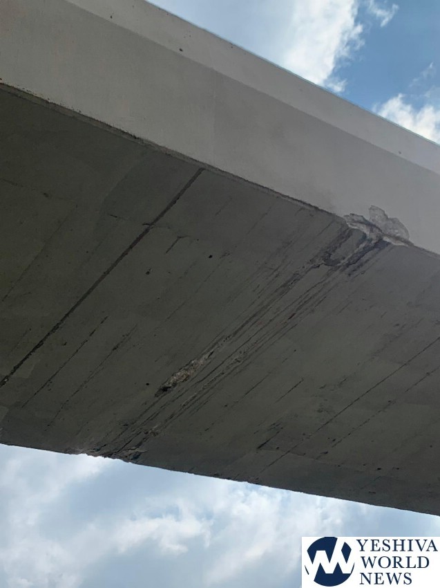 A truck traveling on Route 4 southbound adjacent to Bnei Brak, struck the bottom portion of the concrete on the Coca Cola Bridge on Tuesday morning, resulting in damage to the concrete.