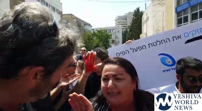 Herzl and Merav Hajaj, parents of Shir Hajaj HY”D who was murdered in a terrorist attack in 2017, stated during the protest that the “hypocrisy of these artists knows no bounds.”